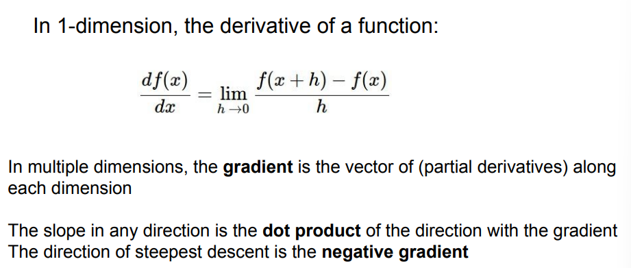 => In practice: Always use analytic gradient, but check implementation with numerical gradient.